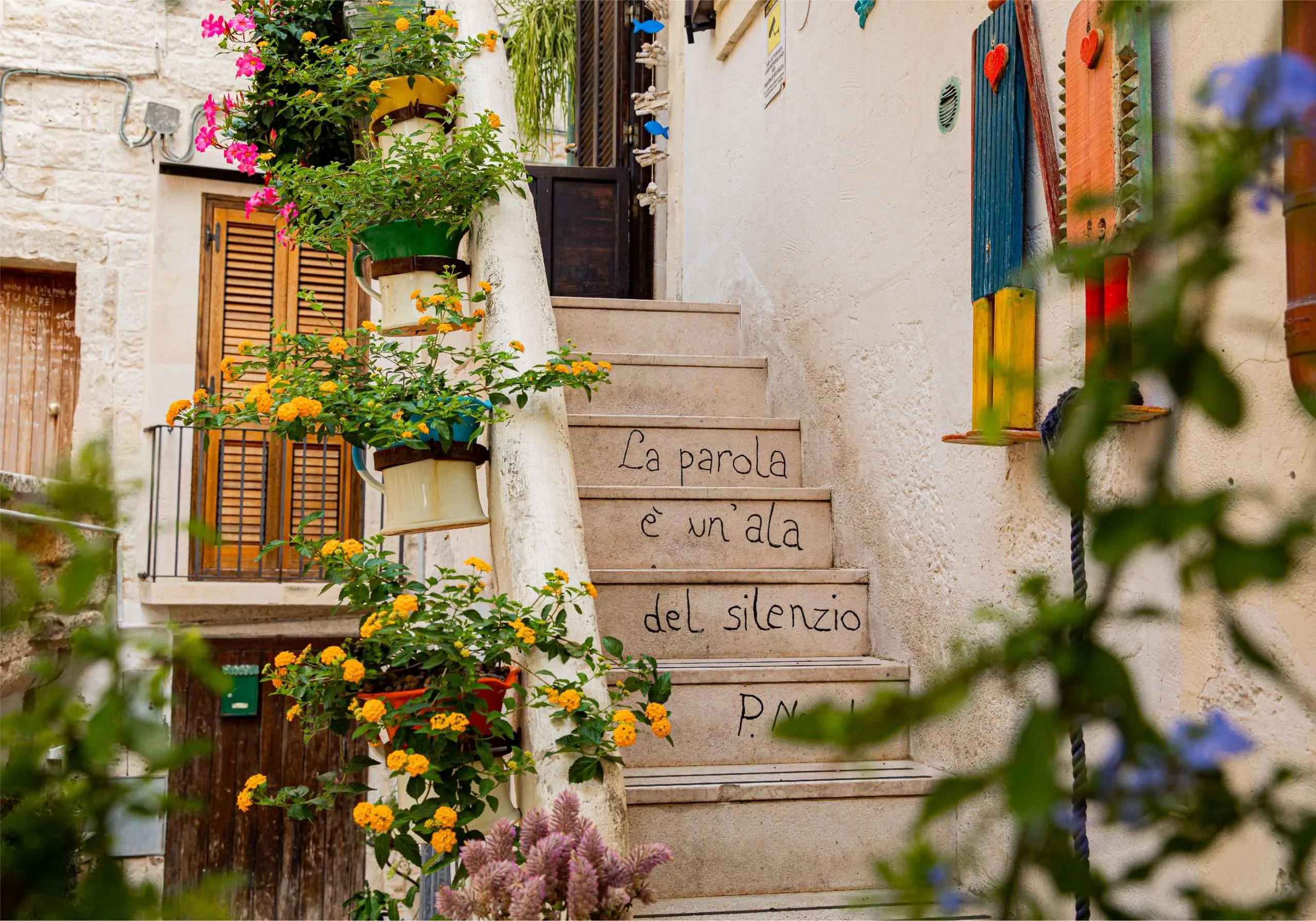 Grünblaues, klares Wasser, das sanft an eine enge Bucht schlägt, umgeben von hohen gebänderten Felsen, aus denen weiß getünchte Häuser zu wachsen scheinen. Darunter unzählige kleine und größere Grotten, die sich geheimnisvoll und verwunschen in den Felsen bohren: Das ist Polignano a Mare. Dieses faszinierende Städtchen liegt in der süditalienischen Provinz Apulien.